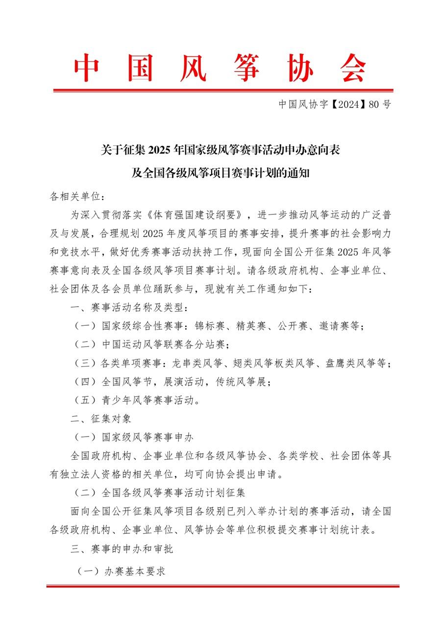 关于征求2025年全国风筝活动报名意向和全国各级风筝活动规划的通知